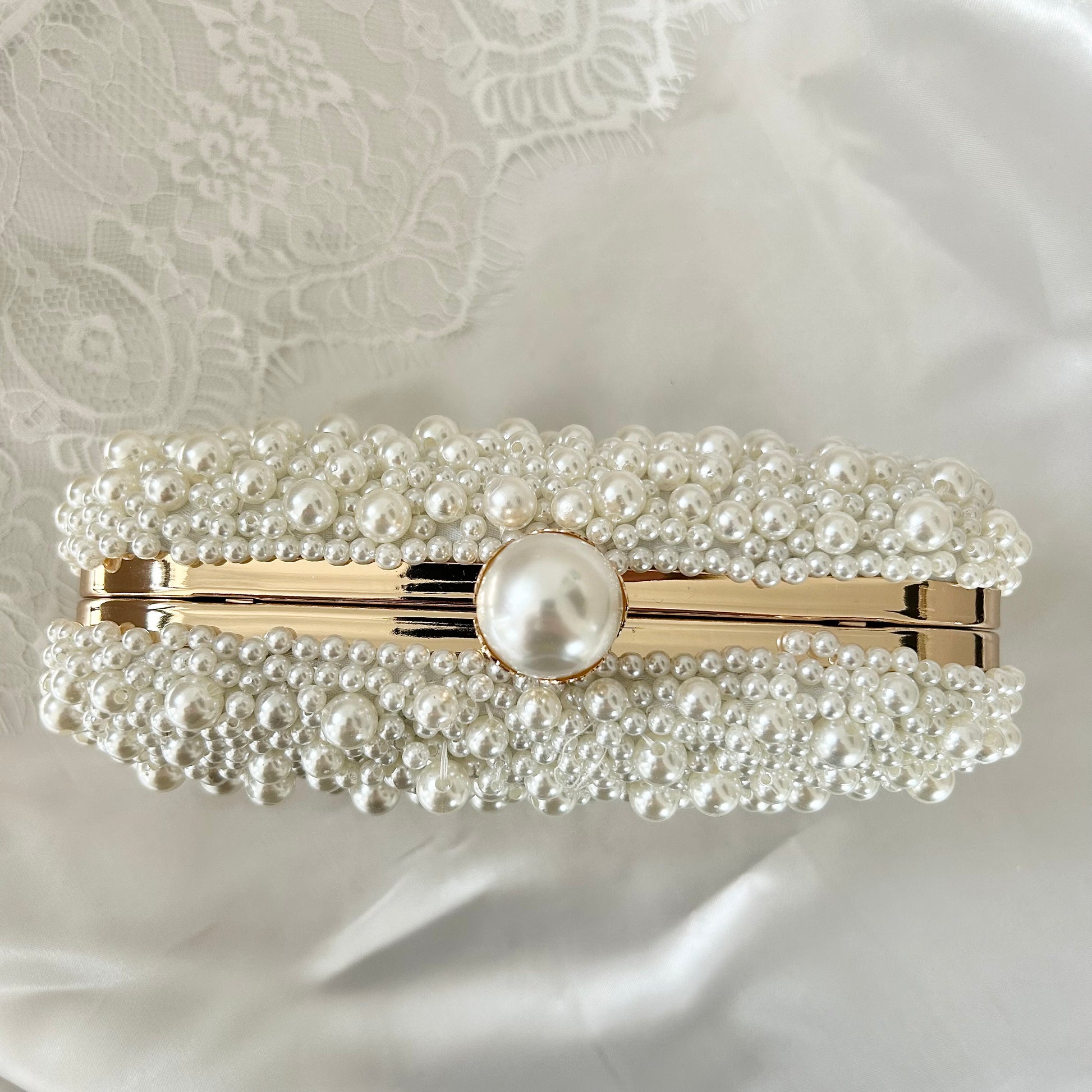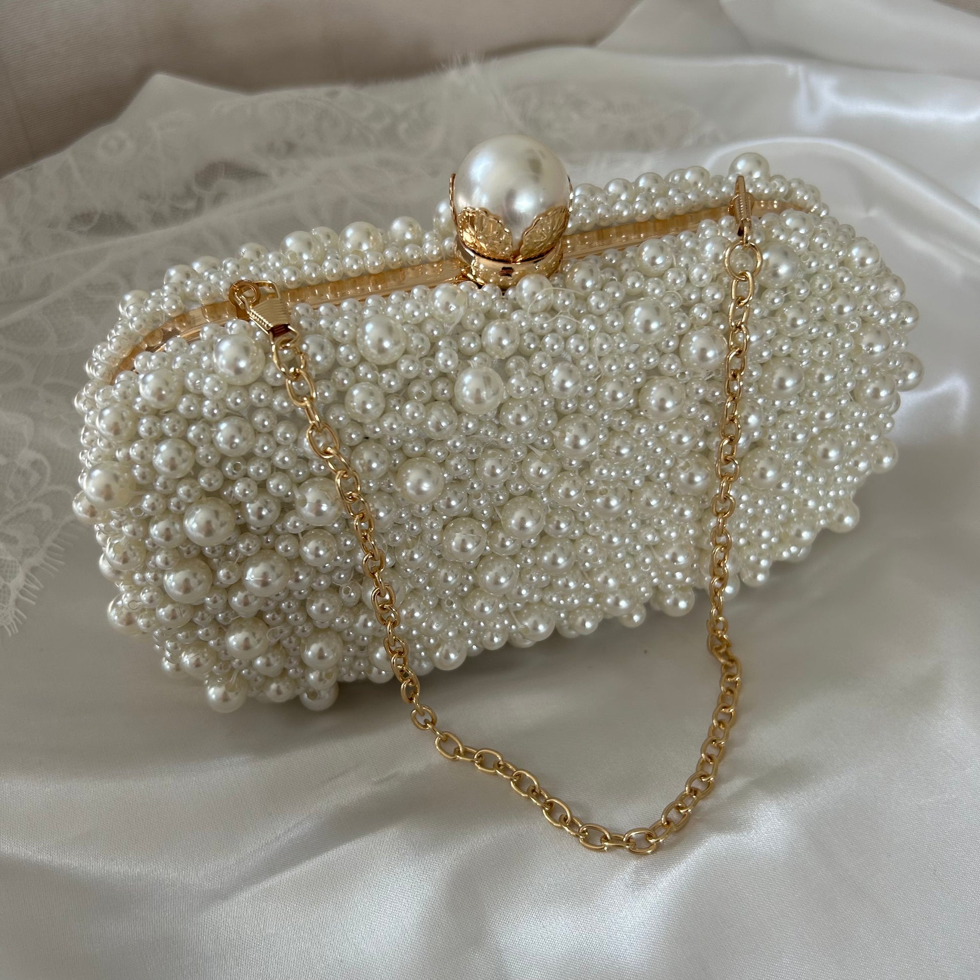 Add a touch of timeless elegance to your special day with this stunning Bridal Pearl Handbag. Ideal for weddings, hen parties, and other glamorous occasions, this handbag combines classic beauty with modern sophistication. Adorned with delicate faux pearls, this handbag exudes a luxurious and timeless look, complementing any wedding or party attire. Sized perfectly to hold your essentials – lipstick, phone, keys, and small personal items. Features a convenient chain strap that can be worn over the shoulder or as a chic handheld clutch.